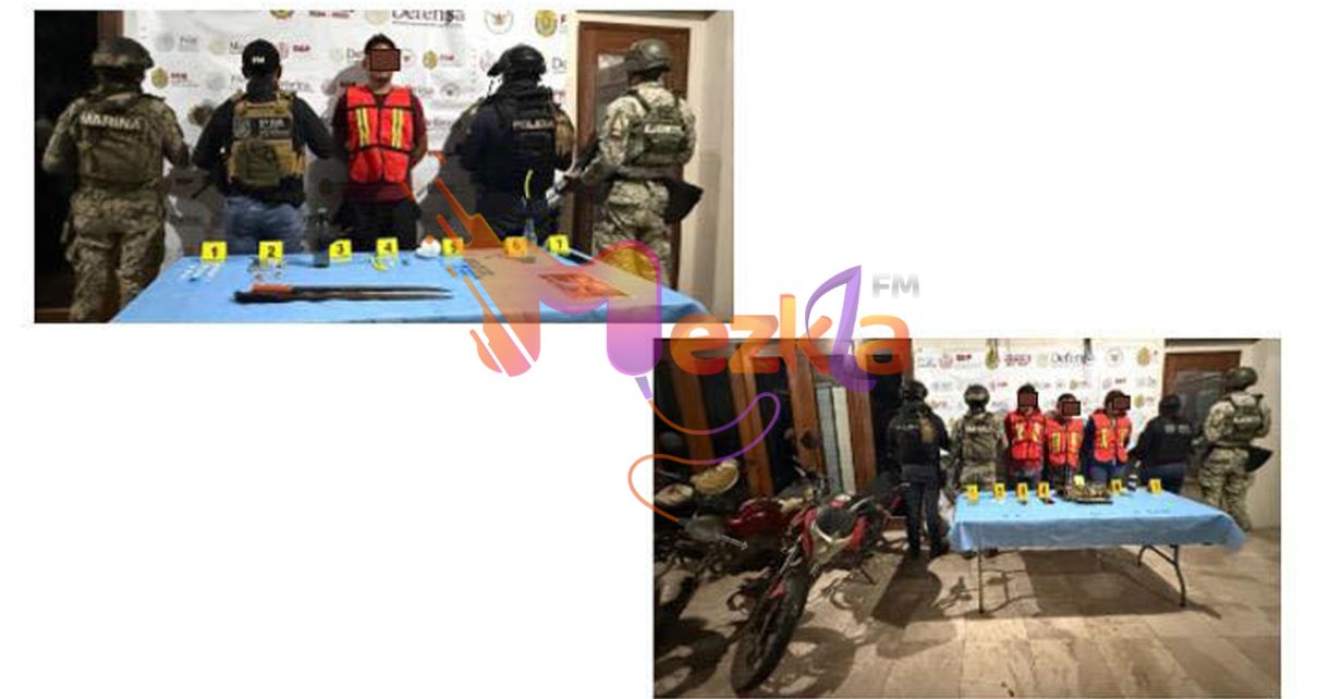 Durante el segundo cateo se logró la detención en flagrancia de María Guadalupe “N”, David “N” y Sergio “N”. Así como el aseguramiento de una báscula gramera, una sustancia blanca granulada con características similares a las del cristal, cartuchos balísticos, un celular, una chamarra con camuflado, una fornitura, una pipa casera y motocicletas.