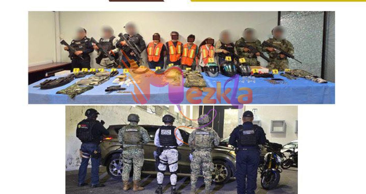 En dicho operativo se detuvo en flagrancia a Efraín “N”, Micaela Patricia “N”, Joel Gastón “N” y Elibeth “N” . Asimismo, se aseguraron bolsas tipo ziploc con polvo granulado y hierba verde seca con características similares a las de la marihuana, tarjetas de circulación, celulares, un cinturón táctico y fundas, un porta arma, prendas de ropa tácticas y con camuflaje, una placa de plástico, un arma de fuego, bolsas tipo ziploc, cartuchos y un casquillo balístico, dinero en efectivo, una trituradora, una libreta con anotaciones, identificaciones y documentos diversos, un chip, una tarjeta de una corporación policial, un cigarro de marihuana, una báscula gramera, una cuchara medidora, cascos para motocicleta, un interruptor de señal, vehículos y una motocicleta.