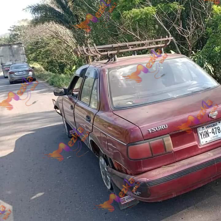 Esta camioneta golpeó por alcance al vehículo tipo Tsuru, color rojo, con placas YHN-478-A, que era manejado por Carmelo Belli Cortes, domiciliado en la comunidad El Sauzal perteneciente a Hueyapan de Ocampo.