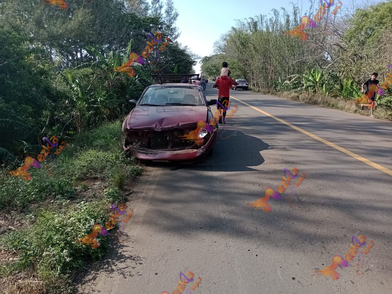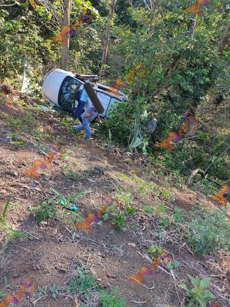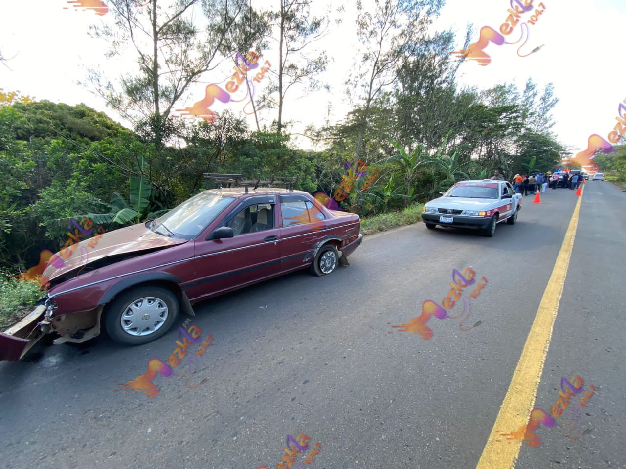 Cabe mencionar que el conductor de la camioneta Honda ante el impacto con el coche perdió el control de la dirección y fue entonces que se salió del área de rodamiento y terminó volcado sobre un desnivel a un costado de la carretera; mientras que el carro Tsuru, sufrió daños en su parte frontal y trasera.