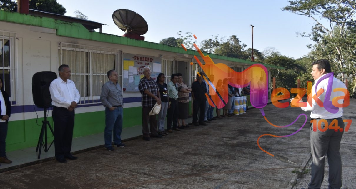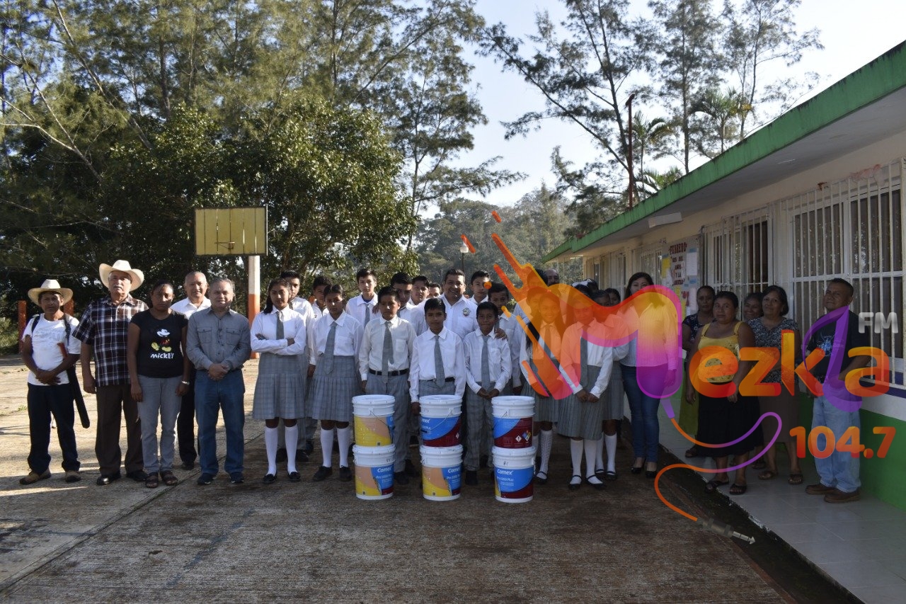 Catemaco, Ver |Cumpliendo con una petición mas solicitada por parte de padres de familia y maestros de la escuela telesecundaria ‘LAS AMÉRICAS” el presidente municipal C. P. Julio César Ortega Serrano acudio desde temprana hora de este dia a este plantel educativo ubicado en la comunidadd de el aguila donde hizo entrega de cubetas de pintura para el embellecimiento de la imágen del plantel educativo.