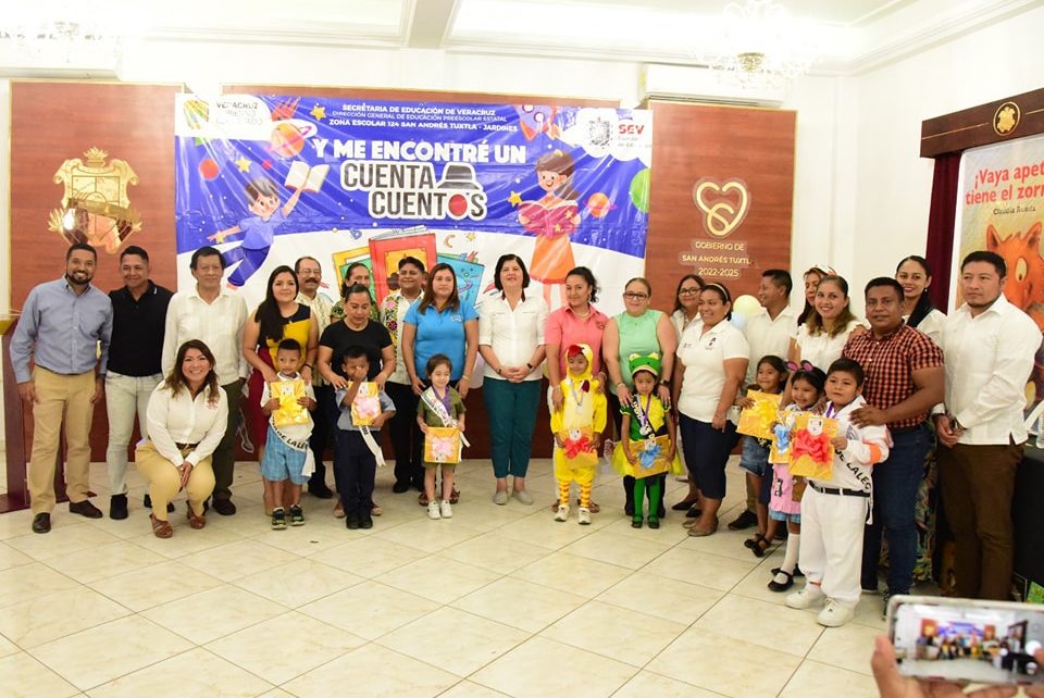 San Andrés Tuxtla, Ver.- En la sala de cabildos del palacio municipal de San Andrés Tuxtla, tuvo lugar este viernes el concurso de cuenta cuentos de escuelas de nivel preescolar, denominado “Y me encontré un cuenta cuentos”, donde participaron alumnos de jardines de niños de esta zona escolar, y el cual contó con la presencia de la alcaldesa sanandrescana, Dra Maria Elena Solana Calzada – Dra Remedios y la Directora General de Educación Inicial y Preescolar de la Secretaría de Educación de Veracruz la licenciada Daly Isabel Torres Baños.