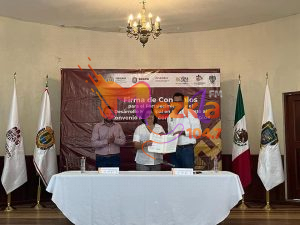 La doctora María Elena Solana Calzada destacó la importancia de la firma de este convenio, que permitirá avanzar en la ruta correcta hacia el fortalecimiento y modernización de la administración de los ayuntamientos, pues aseguró que en la Nueva Agenda Municipalista “Transformación con Orgullo”, es fundamental establecer y promover vínculos de colaboración con instituciones federales y estatales, en favor de las administraciones municipales.