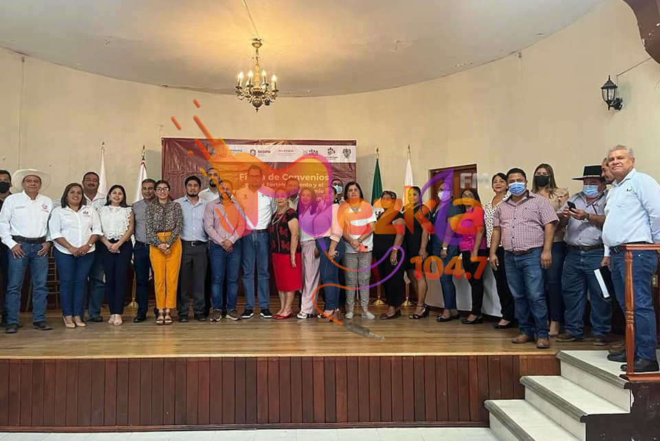 En total participaron en esta firma de convenios, alcaldes y síndicos de los 16 diferentes municipios de la región convocados.