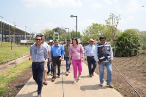 Acompañada del Director de Obras Públicas Municipal, ingeniero José Miguel Oseguera Figueroa, la Directora de Desarrollo Social Municipal, Asunción Gómez Linares y el Director de la Comisión Municipal del Deporte, Hugo Cruz Bustamante, la doctora María Elena Solana Calzada destacó la importancia de esta obra que en breve se estará inaugurando.