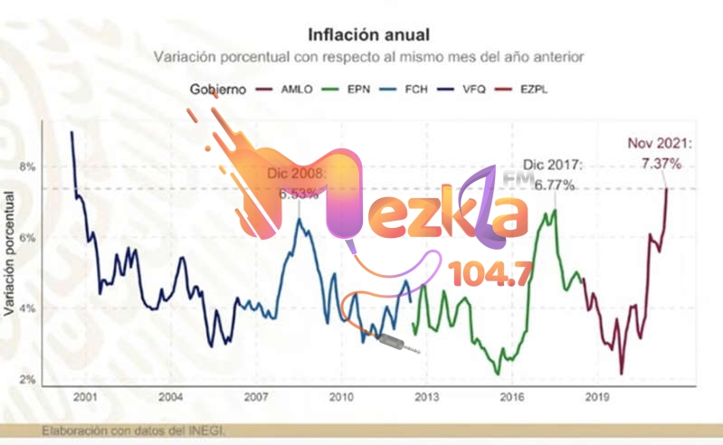 “Esto es nuestro desafio, inflación. En los últimos tiempos, se nos subió la inflación más que en lo más alto de Enrique Peña Nieto que fue de 6.77%, aquí estamos en 7.37% y esto es (Felipe) Calderón que fue 6.53%, lo más alto. Esto es un fenómeno también externo, espero que sea transitorio“, dijo el presidente.