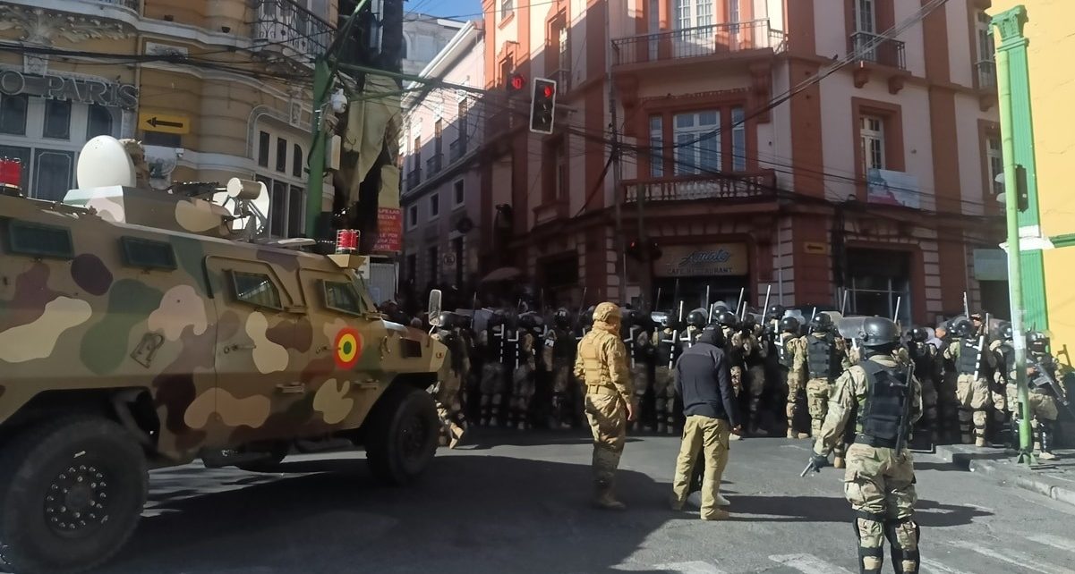 Un tanque tira las puertas de la sede del Ejecutivo de Bolivia, luego que el comandante general del Ejército, Juan José Zuñiga, amenazara con tomar la sede del Gobierno y cambiar el gabinete.