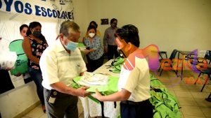 Tavo Pérez aseguró que seguirá entregando los paquetes escolares, pues aunque aún no se reactivan las clases presenciales, este compromiso se había hecho con anterioridad y se cumple apoyando con ello a la economía familiar.
