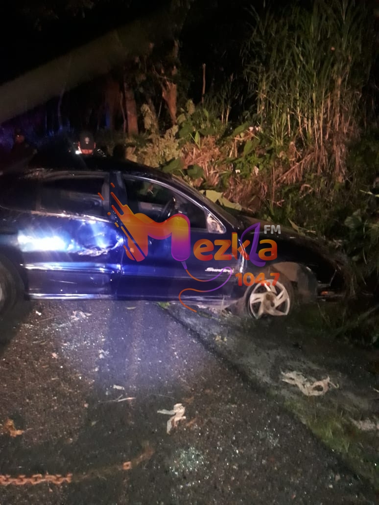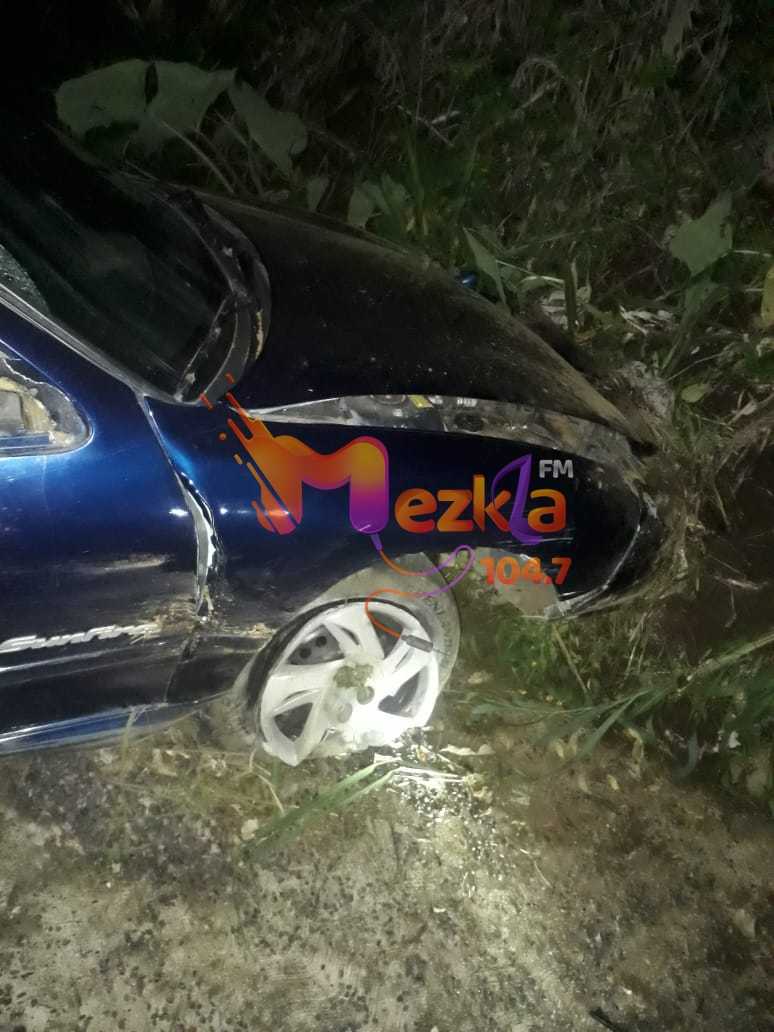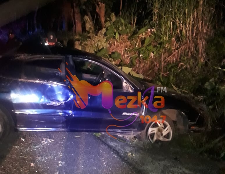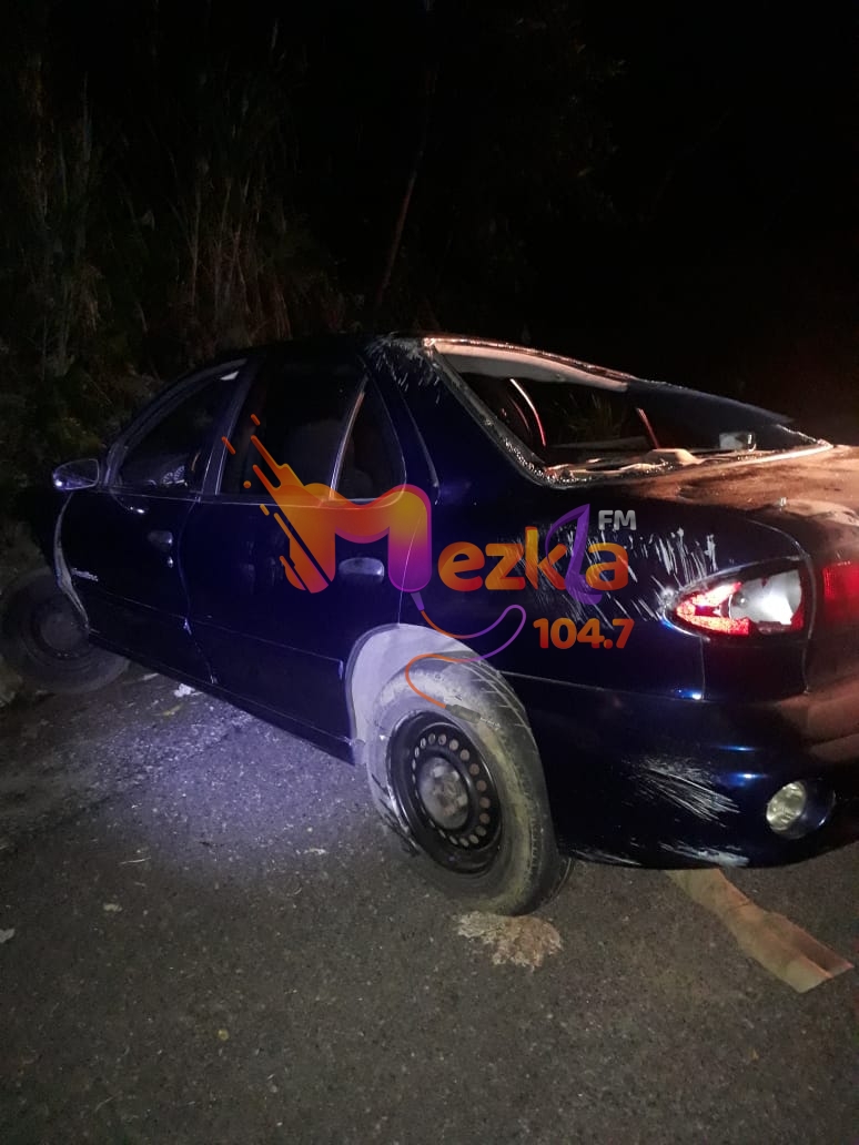 Catemaco, Ver.- La noche de ayer sobre la carretera estatal que va de Catemaco a Sontecomapan, a la altura de la comunidad de Dos Amates, se registró la salida y volcadura de un auto Pontiac, color azul, con matrícula YJB-93-99 del estado.
