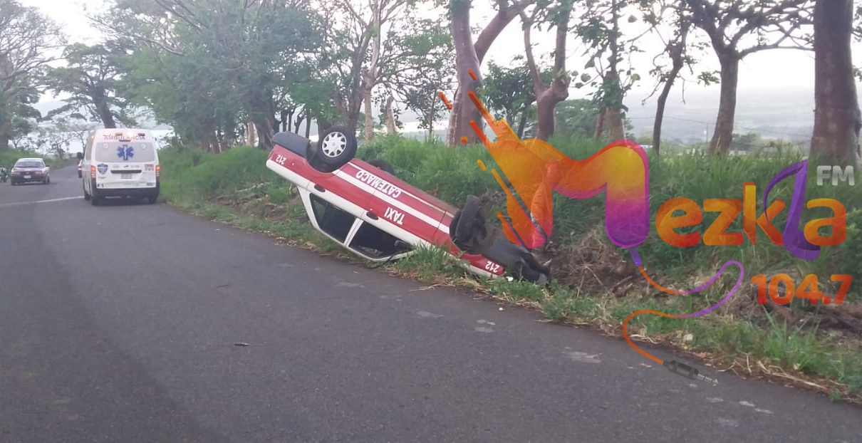 Se trató de la salida y volcadura de un auto tipo Tsuru habilitado como taxi. con los colores oficiales rojo y blanco, marcado con el número económico 212 de este mismo municipio.