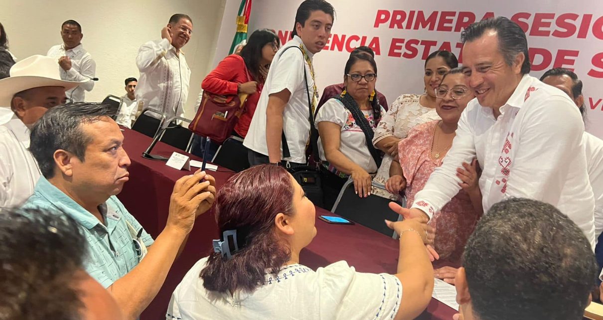 Lerdo de Tejada, Ver.- Dando cumplimiento al compromiso de trabajo coordinado en materia de seguridad, la presidenta , y sindica en funciones María Esther Arróniz López y Karem Sahara Ruiz Machucho respectivamente; asistieron a la primera sesión extraordinaria 2023 conferencia Estatal de Seguridad Pública Municipal que fue presidida por el mandatario estatal Cuitláhuac García Jiménez que estuvo acompañado por el Secretario Eric Cisneros Burgos, la Magistrada Lizbeth Aurelia Jiménez Aguirre y el Secretario de Seguridad pública Cuauhtémoc Zúñiga Bonilla.
