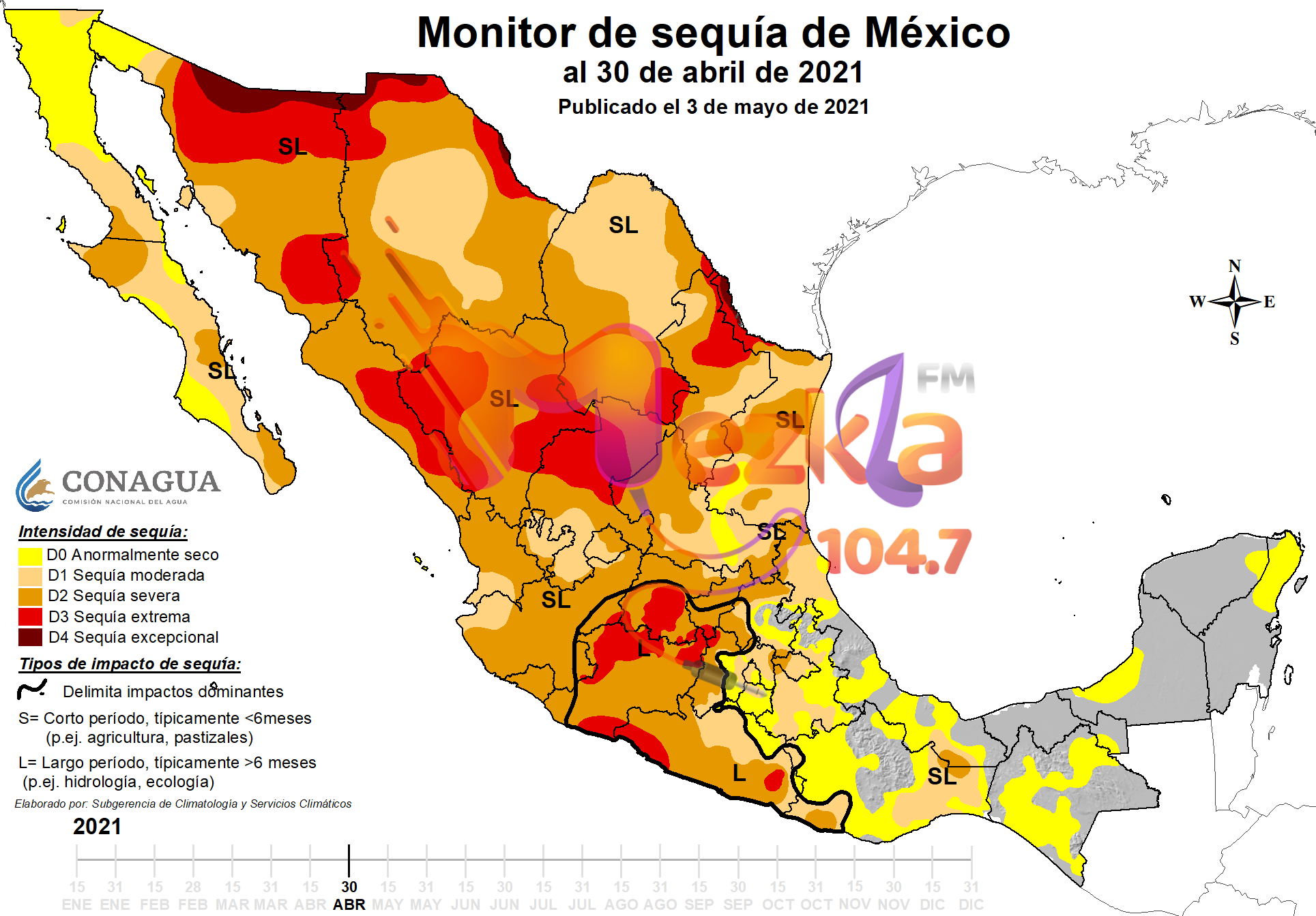 Con información del Servicio Meteorológico Nacional hasta el 30 de abril, se tienen las siguientes categorías: