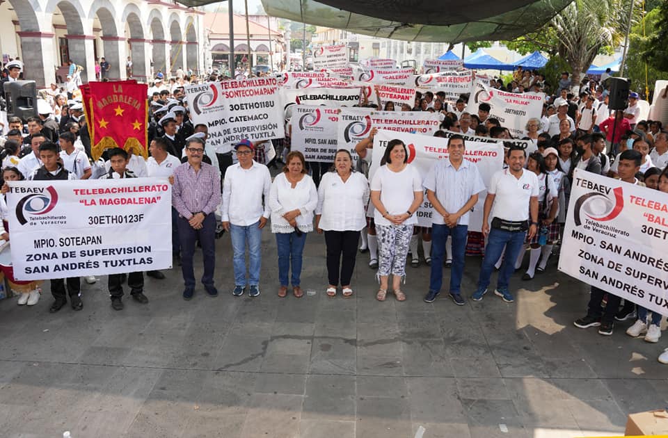 San Andrés Tuxtla, Ver.- “Quiero felicitar a todos los alumnos de los Telebachilleratos de la zona, por esta muestra anual que siempre nos sorprende con todo lo que traen, hoy somos partícipes de la Inauguración de la Muestra Anual de Actividades Paraescolares de TEBAEV de la región, y aprovecho para refrendar el compromiso importante que asumimos como gobierno municipal, para el sector educativo, reconozco la disciplina, la calidad educativa y lo bello de este evento que concentra a varias escuelas del sistema #TEBAEV, algunos hoy incluso con trajes típicos, todo muy bonito, los felicito”, expresó la alcaldesa María Elena Solana Calzada, en el marco de la Muestra Anual de Actividades Paraescolares de TEBAEV, que tuvo como sede el Parque Sebastián Lerdo de Tejada, de San Andrés Tuxtla.