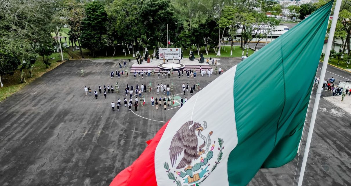 Santiago Tuxtla, Ver.- Esta mañana acompañada del Director de Educación, Hirohito Ton Bustamante, asistió la alcaldesa Kristel Hernández Topete al Primer Batallón de Infantería de San Andrés Tuxtla donde se llevó a cabo la conmemoración del Día de la Bandera Nacional, realizándose un acto cívico y haciendo entrega de banderas a las instituciones educativas.
