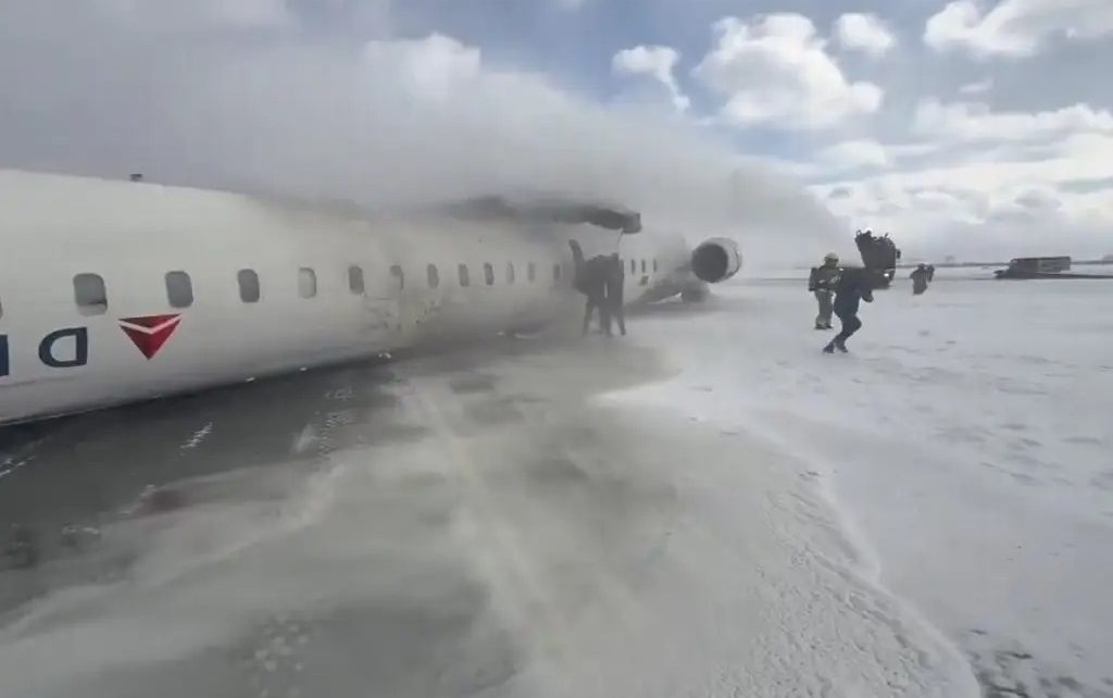 Un avión de pasajeros de la aerolínea estadounidense Delta se estrelló cuando aterrizaba en el aeropuerto Pearson de Toronto, en Canadá, donde quedó girado al revés, sin que se haya informado de víctimas mortales.