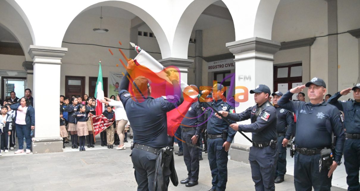 Acompañados de trabajadores municipales, así como alumnos y maestros de instituciones educativas de la ciudad, rindieron homenaje al máximo lábaro patrio del país, que representa la historia e identidad de las y los mexicanos.