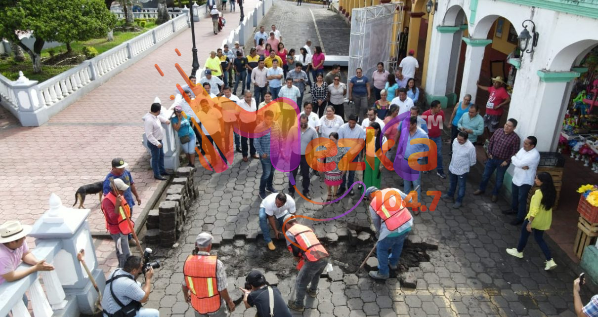 Santiago Tuxtla, Ver.- Kristel Hernández Topete acompañada de los ediles, llevó a cabo el banderazo de inicio de obra de la rehabilitación de las calles Ignacio Zaragoza, Ayuntamiento, Ignacio Comonfort y 5 de Mayo, con la cual se da continuidad al mejoramiento del centro histórico de la ciudad.