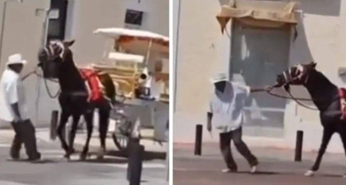 A través de un video que circula en redes sociales y que se ha viralizado se observa a un calesero golpeando y jalando bruscamente al equino, incluso se puede escuchar claramente a la persona que grabó la escena decir: ¡Señor no le pegue al caballo!
