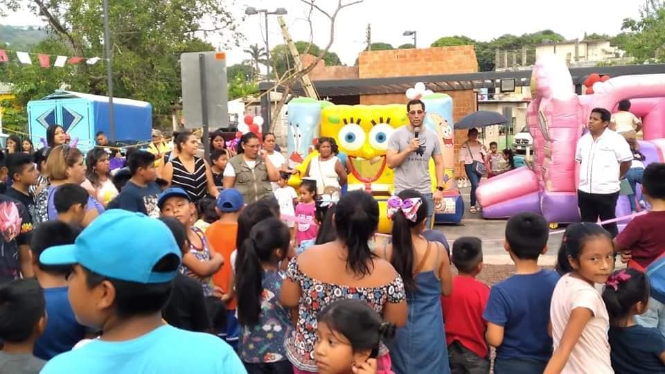 San Andrés Tuxtla, Ver.- En el marco de la semana de la niñez, y por instrucciones de la Presidenta Municipal de San Andrés Tuxtla, la doctora María Elena Solana Calzada, se festejó a los pequeñitos de distintos puntos de la zona rural, con un festival itinerante que contó con un entretenido show de payaso, juegos, concursos, juguetes y mucha diversión.