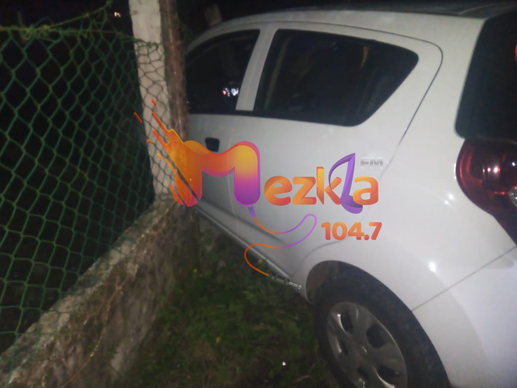 Se trató de la salida y choque de un auto compacto tipo beat, color blanco, con matrícula de circulación NCR-78-25 del estado de México.