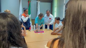 La encargada por parte de la Jurisdicción Sanitaria 10, es la jefa del departamento de Regulación Sanitaria, Dra. Silvia Poucholén Domínguez, quien con personal a su cargo, mostró la forma de elaboración del repelente casero, el cual puede ser empleado de manera segura por las personas que así lo requieran, elaborándolo con elementos que se cuentan regularmente en casa.