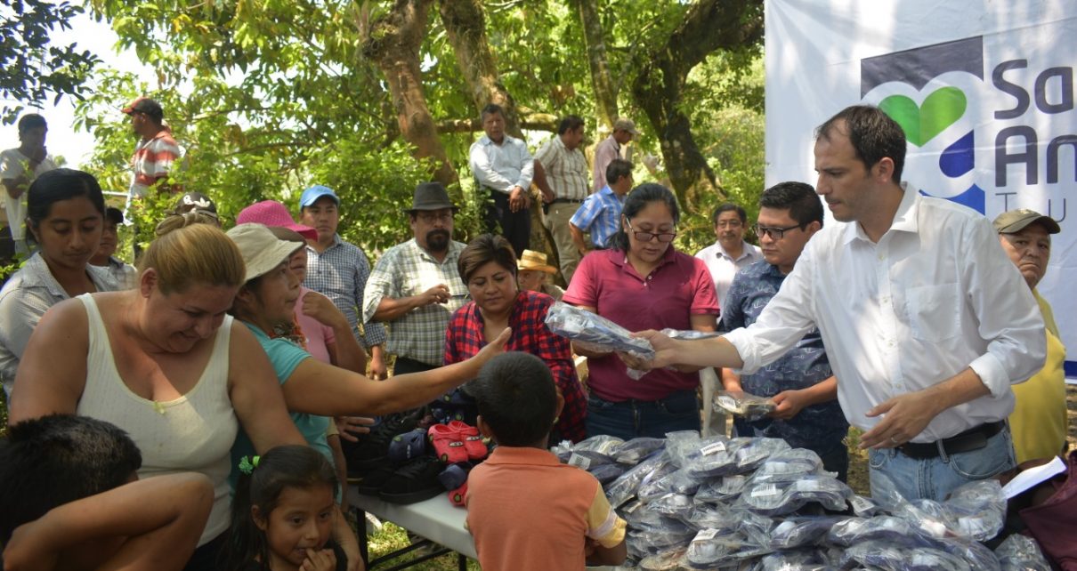 San Andrés Tuxtla.- ” La política bien hecha, como la hacemos en esta administración, es para servir a la gente, los buenos oficios nos permitieron con el SAE, obtener para la comunidad de El Diamante, 500 kilogramos de ropa para frío, que beneficiará a 150 personas que podrán así enfrentar la temporada de bajas temperaturas, que se prevén en la zona de montaña, durante la segunda mitad del año”, explicó Tavo Pérez, durante su gira de trabajo por comunidades de la zona de montaña.