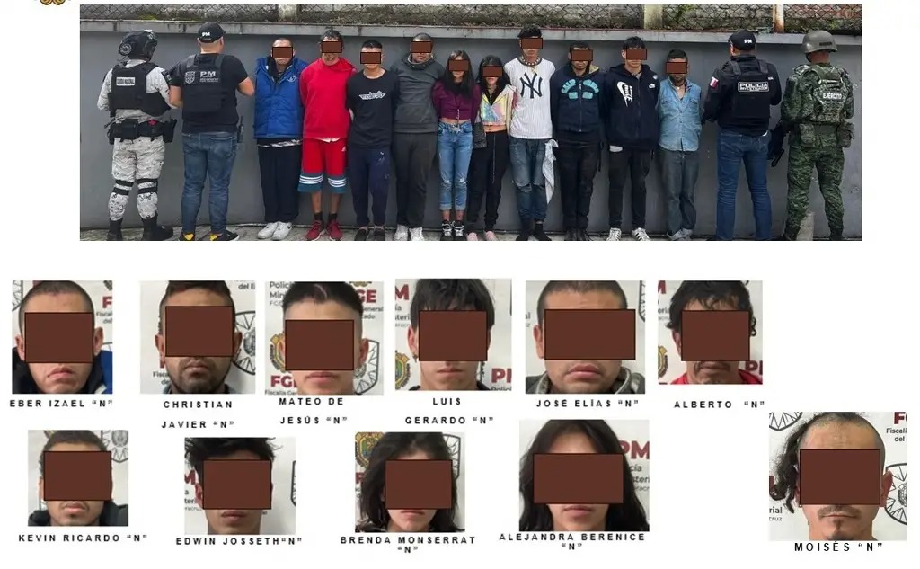 En un comunicado, la FGE detalla que el primer operativo se realizó en un domicilio ubicado en la calle Mártires de Xalapa, colonia Felipe Carrillo Puerto, donde fueron detenidos en flagrancia 8 masculinos, Eber Izael “N”, Christian Javier “N”, Mateo de Jesús “N”, Luis Gerardo “N”, José Elías “N”, Alberto “N”, Kevin Ricardo “N”, Edwin Josseth “N”, y dos femeninas, Brenda Monserrat “N” y Alejandra Berenice “N”. Durante el cateo se aseguraron estupefacientes, teléfonos celulares y radios de comunicación.