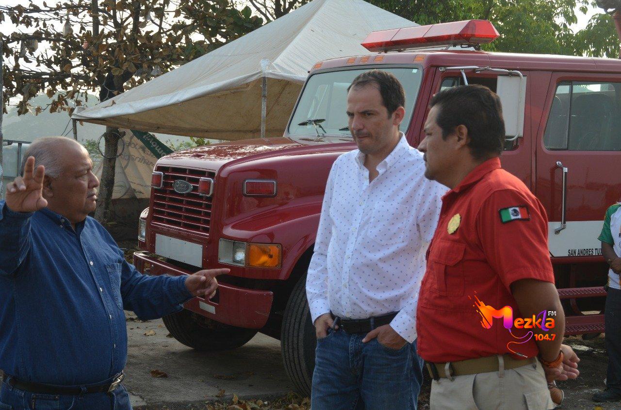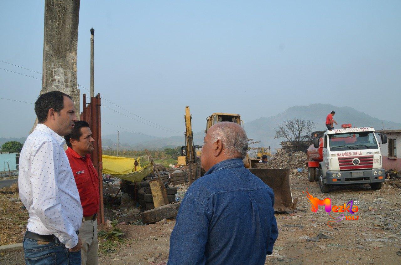 San Andrés Tuxtla.- “El incendio que se suscitó en el relleno sanitario la semana pasada ha sido controlado de manera eficaz, gracias al trabajo conjunto de Protección Civil y Limpia Pública, sin embargo, la alta concentración de gases, impide que el fuego se extinga por completo, por eso nos encontramos aquí supervisando las labores de enfriamiento que oportunamente se realiza en esta zona, y reconocemos la enorme responsabilidad que asume nuestro personal municipal, por la integridad y salud de los sanandrescanos”, comentó Octavio Pérez Garay, Presidente Municipal de San Andrés Tuxtla, durante su visita al relleno sanitario.