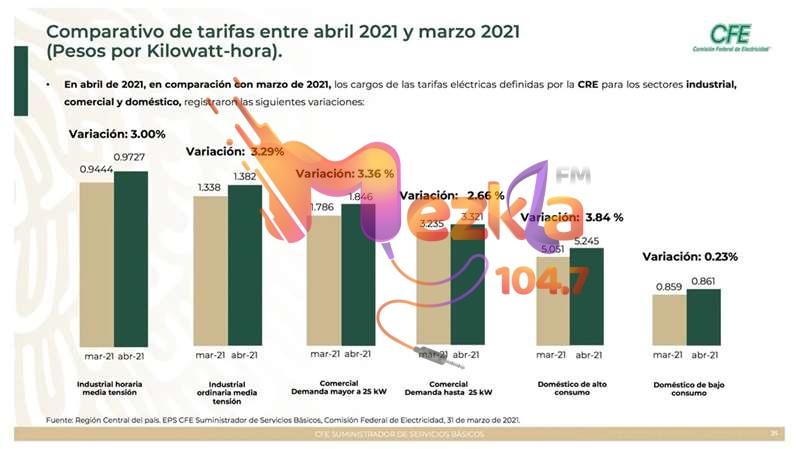 José Martín Mendoza, directivo de la Comisión Federal de Electricidad (CFE), informó que de diciembre de 2018 a abril de 2021, en el país la tarifa eléctrica de bajo consumo ha subido 8.6 por ciento.