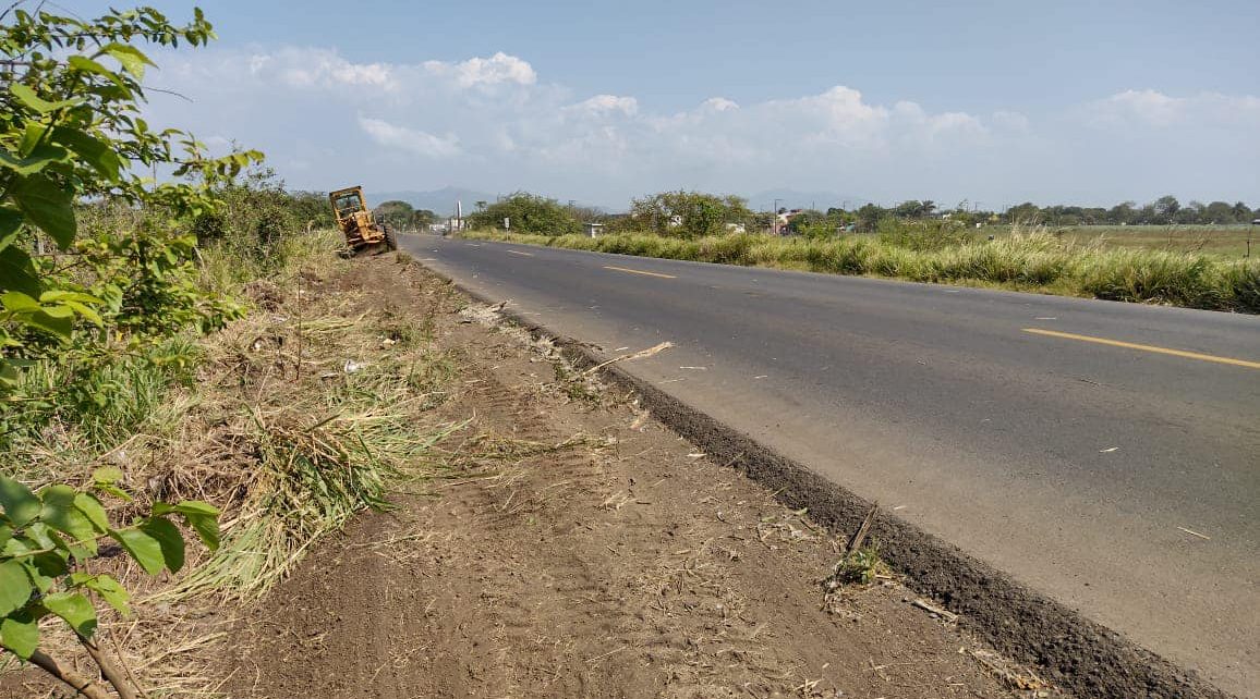 La dirección de obras públicas lleva a cabo el desorille y limpieza de la carretera federal 180 tramo Ángel R. Cabada, una acción importante para mantener la seguridad vial.