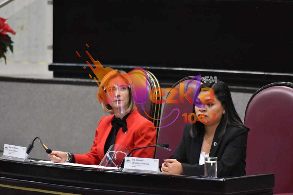 Las diputadas Ana Miriam Ferráez Centeno y Elizabeth Cervantes de la Cruz, presidenta y secretaria de la Comisión Permanente de Protección Civil, respectivamente, atendieron la exposición de la servidora pública sobre las acciones realizadas de noviembre de 2019 a noviembre de 2020.