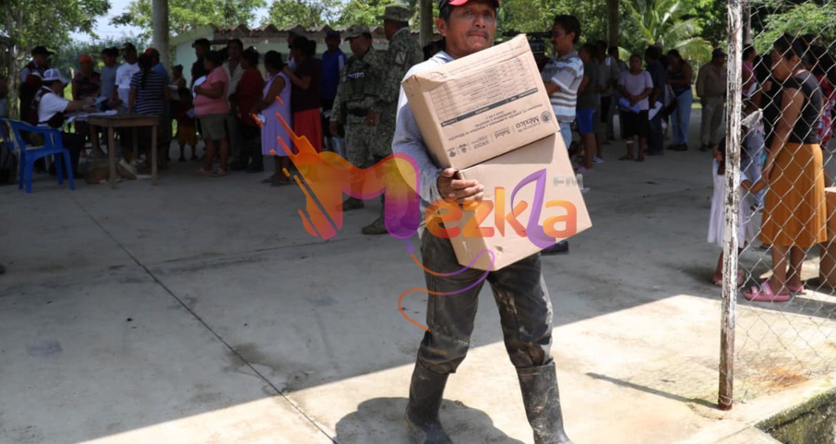 Este lunes, los apoyos llegaron a Potrero Nuevo, Lázaro Cárdenas y Morelos; así como vía fluvial a Xochiltepec, Halcón y Pino Suárez, en los municipios de Texistepec y San Juan Evangelista.