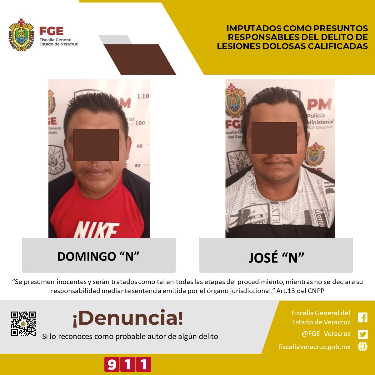 La Fiscalía Regional Cosamaloapan realizó imputación en contra de José “N” y Domingo “N” como presuntos responsables del delito de lesiones dolosas calificadas cometido en agravio de la víctima M.A.A.
