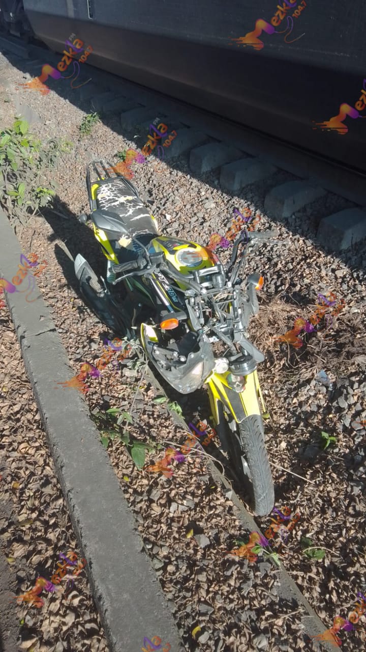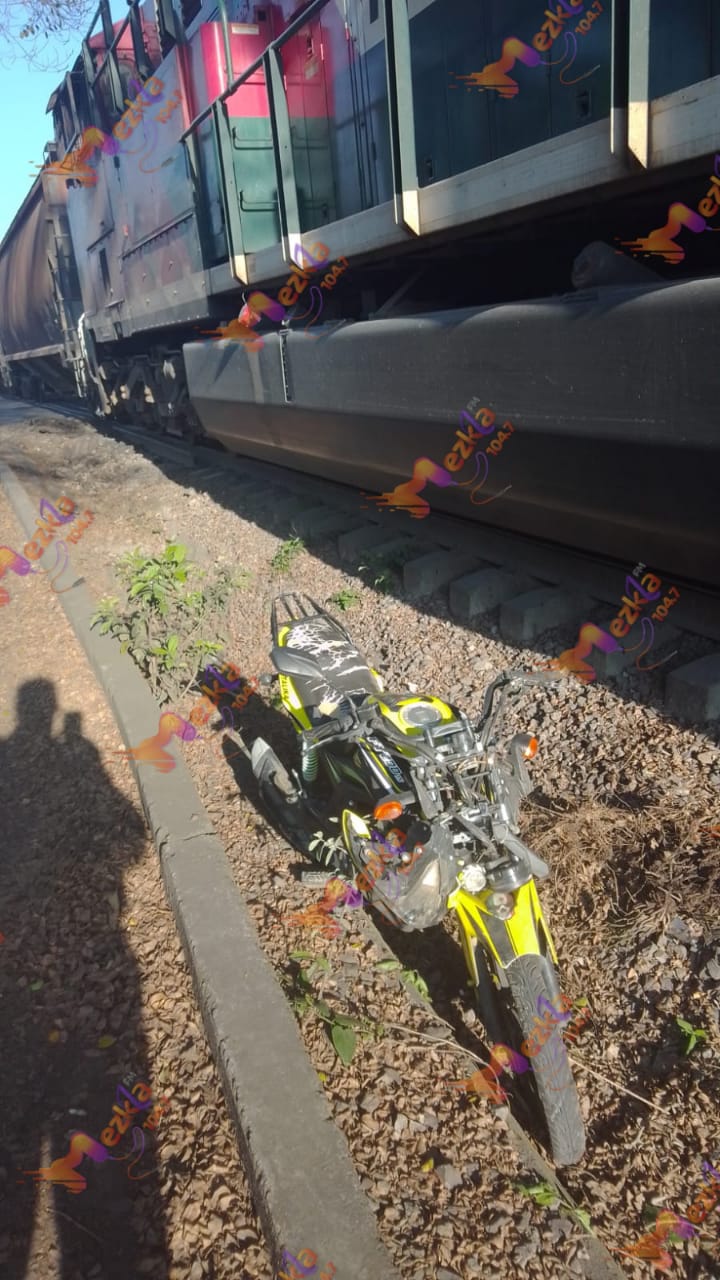 Ante el fuerte impacto una de las motocicletas cayó sobre las vías férreas y fue arrastrada por varios metros.