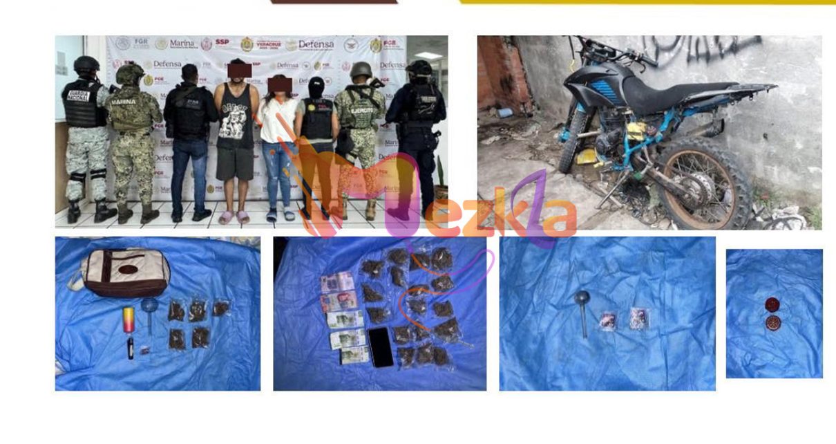 Así mismo, se aseguraron pipas de cristal, un grider, un encendedor, un vape, dinero en efectivo, una motocicleta, bolsas herméticas que en su interior contenían una sustancia granulada color blanco y hierba seca color verde con características similares a la marihuana.