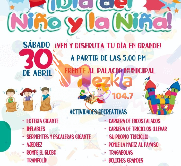 El ayuntamiento de Santiago Tuxtla que preside Kristel Hernández Topete, en coordinación con el DIF a cargo de Yessika Rodríguez Palagot, invitan a los niños y niñas de nuestro municipio a celebrar su día en grande, este sábado 30 de Abril en el Festival del Día del Niño y la Niña, el cual se llevará a cabo frente al Palacio Municipal a partir de las 5:00 pm.