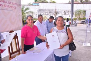 El ayuntamiento de Santiago Tuxtla que preside Kristel Hernández Topete, hizo entrega de títulos parcelarios a ejidatarios del municipio, por parte del Registro Agrario Nacional (RAN), con el cual ahora, podrán brindar a sus familias la certeza jurídica y la legitima posesión de la propiedad de sus tierras, asegurando su bienestar.