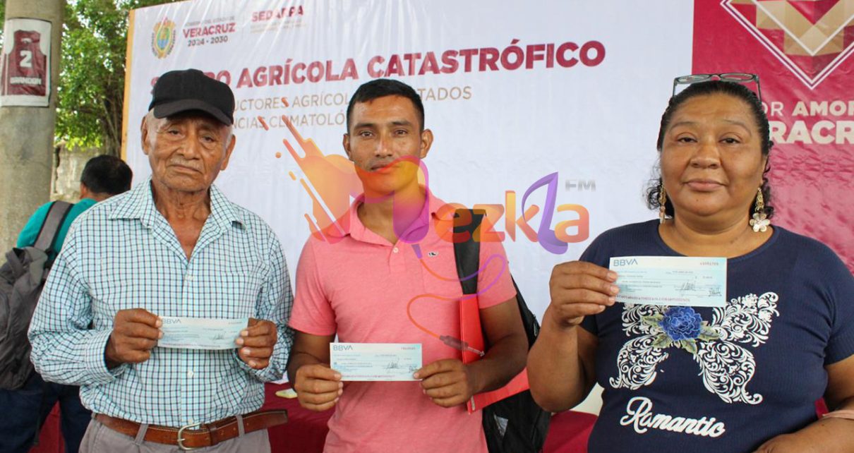 Minatitlán, Ver., jueves 19 de junio de 2025.- El Gobierno de Veracruz, a través de la Secretaría de Desarrollo Agropecuario, Rural y Pesca (Sedarpa), entregó 1 millón 171 mil 500 pesos correspondientes al Seguro Agrícola Catastrófico de los ciclos primavera-verano y otoño invierno 2024 a productores del sur.