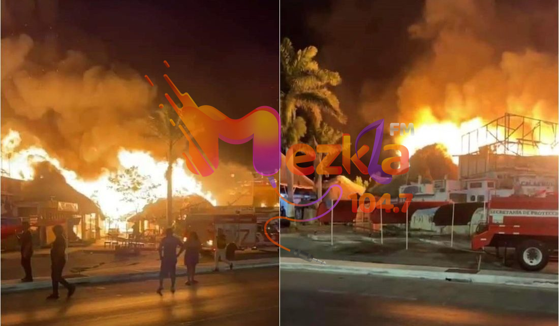 La madrugada de este domingo, un incendio consumió 12 palapas del área ubicada en la zona de cocteleros en el malecón principal de esta ciudad.
