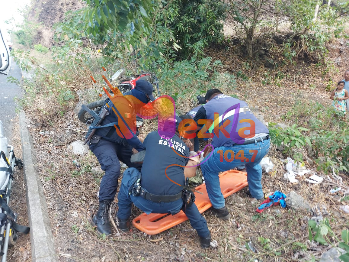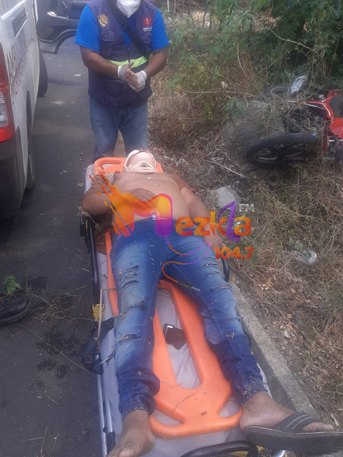 Esta persona conducía una motocicleta color rojo la cual quedó sobre unas piedras a un costado de la carretera.