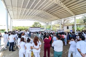 San Andrés Tuxtla, Ver.- Con la participación de practicantes de las facultades de medicina, nutrición, psicología, educación física, odontología, quiropráctica, y enfermería, entre otras, este viernes, en representación de la Presidenta Municipal de San Andrés Tuxtla, la Dra Maria Elena Solana Calzada – Dra Remedios; el Presidente del DIF Municipal, el ingeniero Felipe Rubio Solana, junto con el Vicerrector de la Universidad Veracruzana, Región Veracruz, Rubén Edel Navarro, en representación del doctor Martín Aguilar Sánchez, rector de la Universidad Veracruzana, inauguraron la Feria de la Salud 2023 en la comunidad de Cerro de las Iguanas.