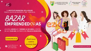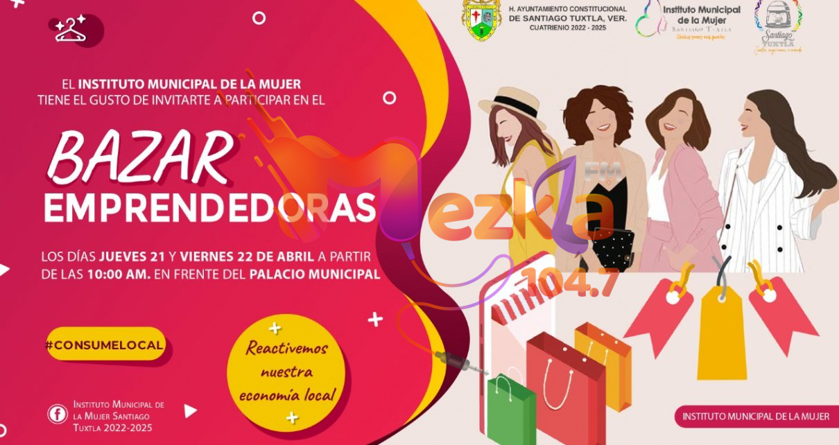 El ayuntamiento de Santiago Tuxtla que preside Kristel Hernández Topete en coordinación con el Instituto Municipal de la Mujer, invitan a todas las mujeres del municipio a participar en el “Bazar Emprendedoras” los días jueves 21 y viernes 22 de abril.