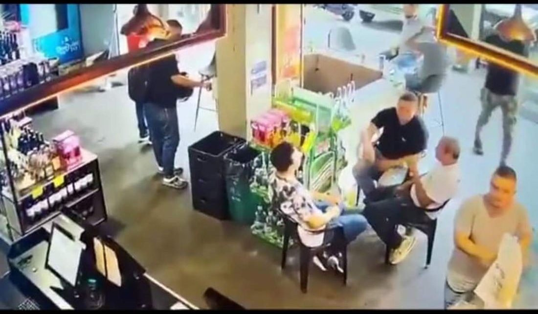 El video muestra cómo los dos hombres comienzan a agredir al sujeto de 29 años. Uno de ellos saca un arma, mientras el joven se aleja. Los clientes que estaban en el lugar y otros trabajadores se apartan.