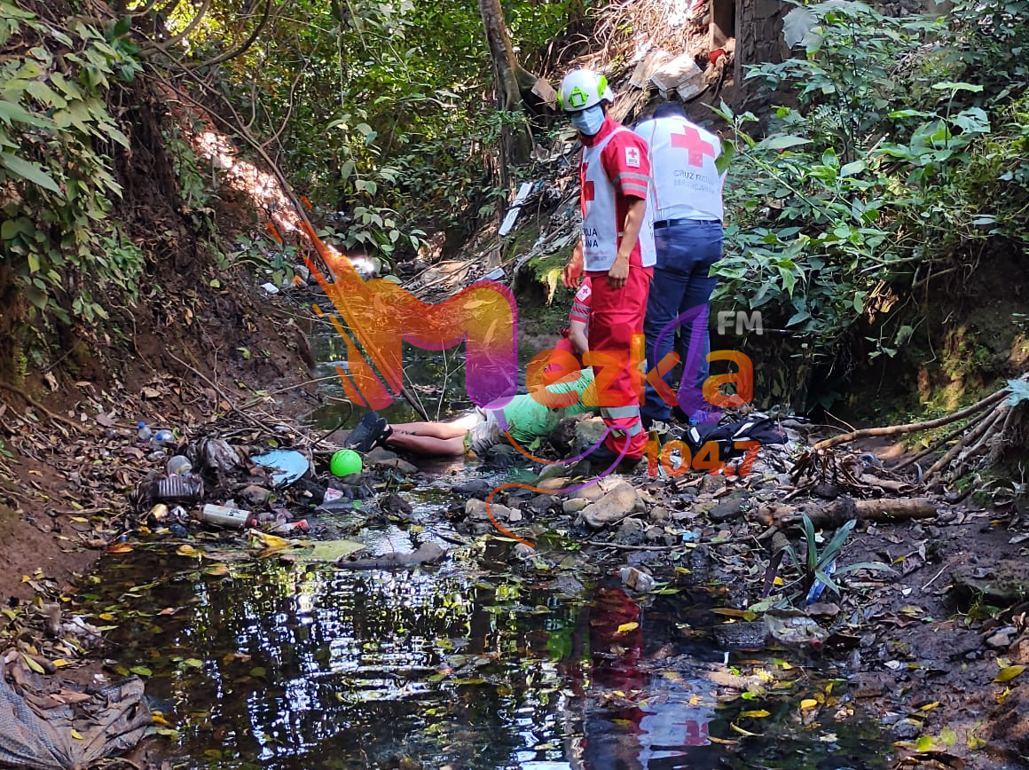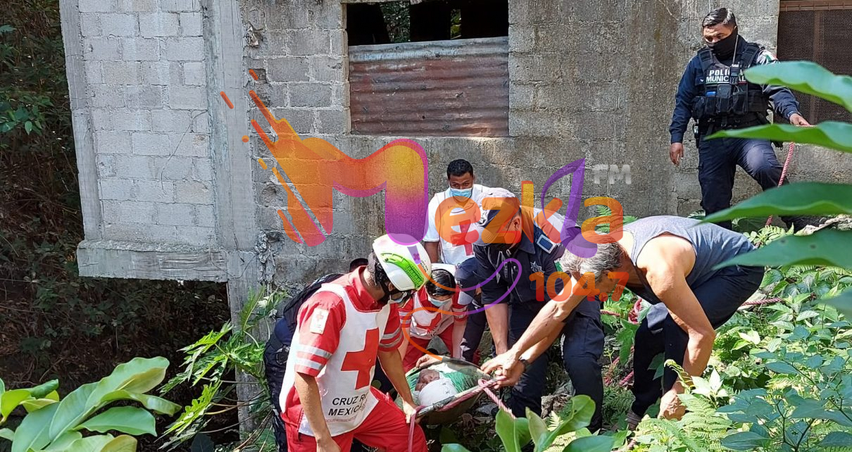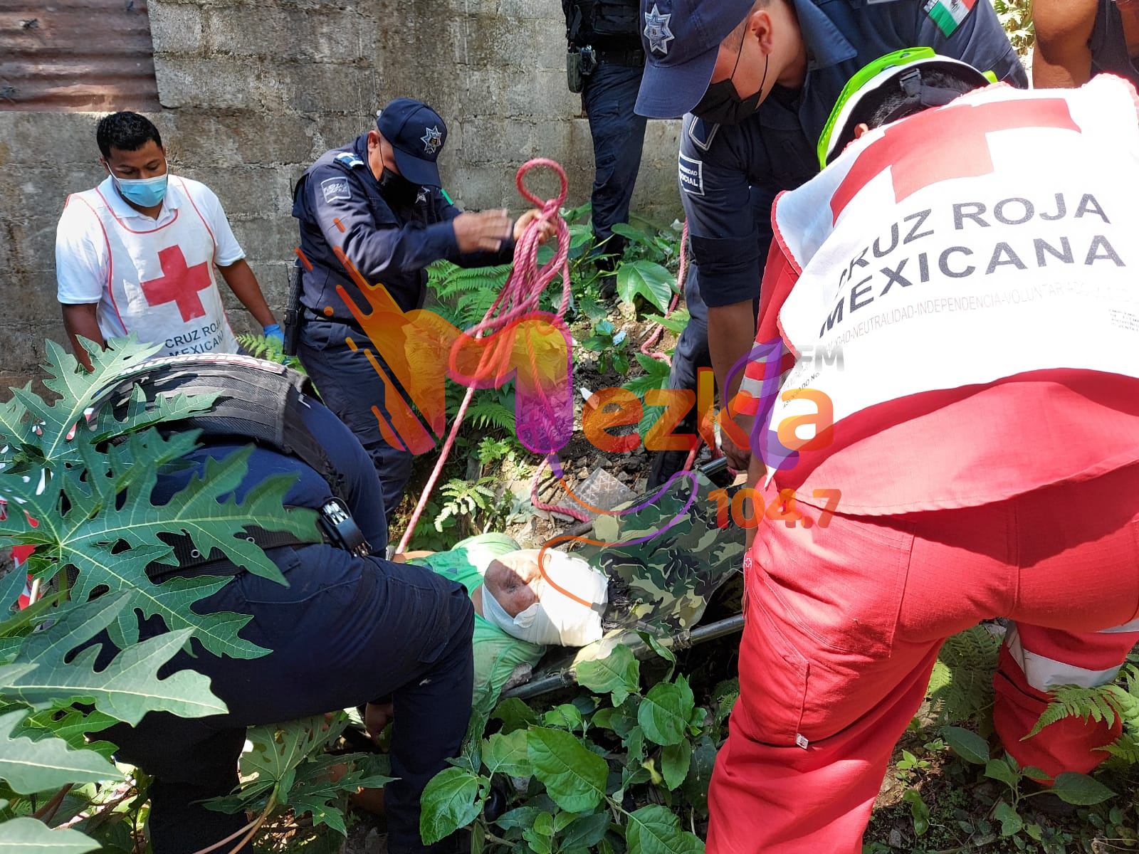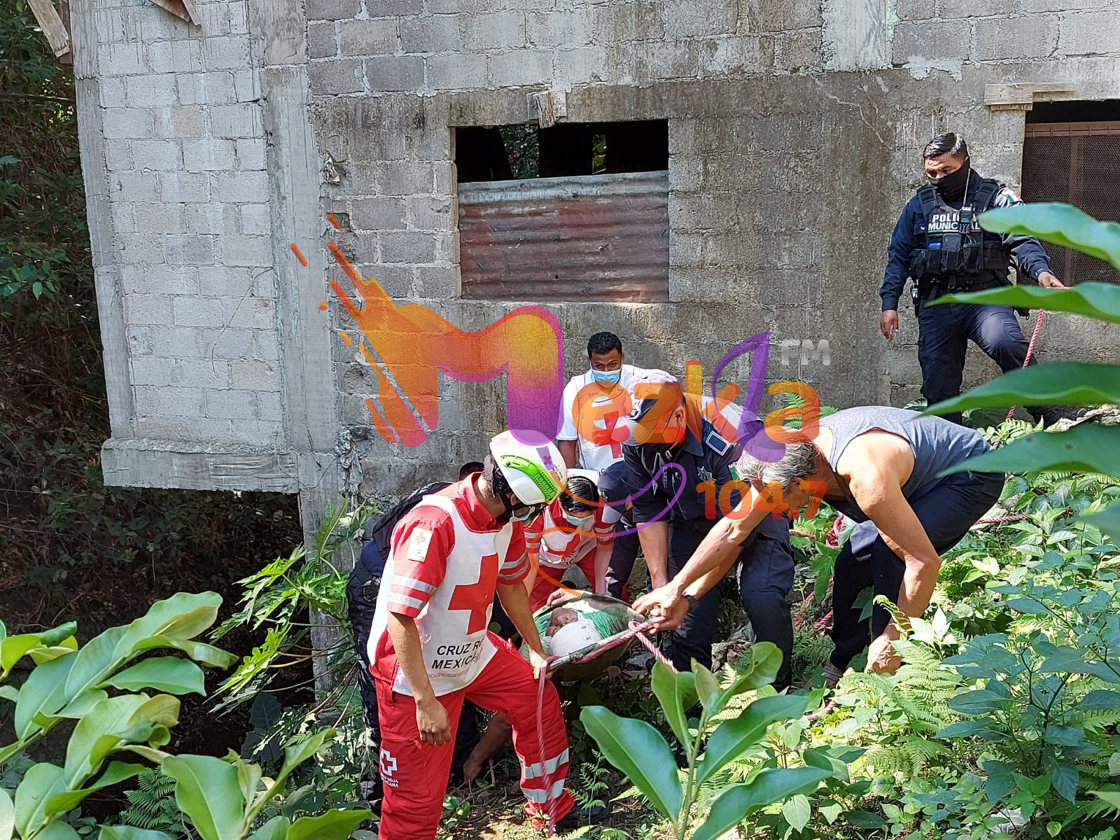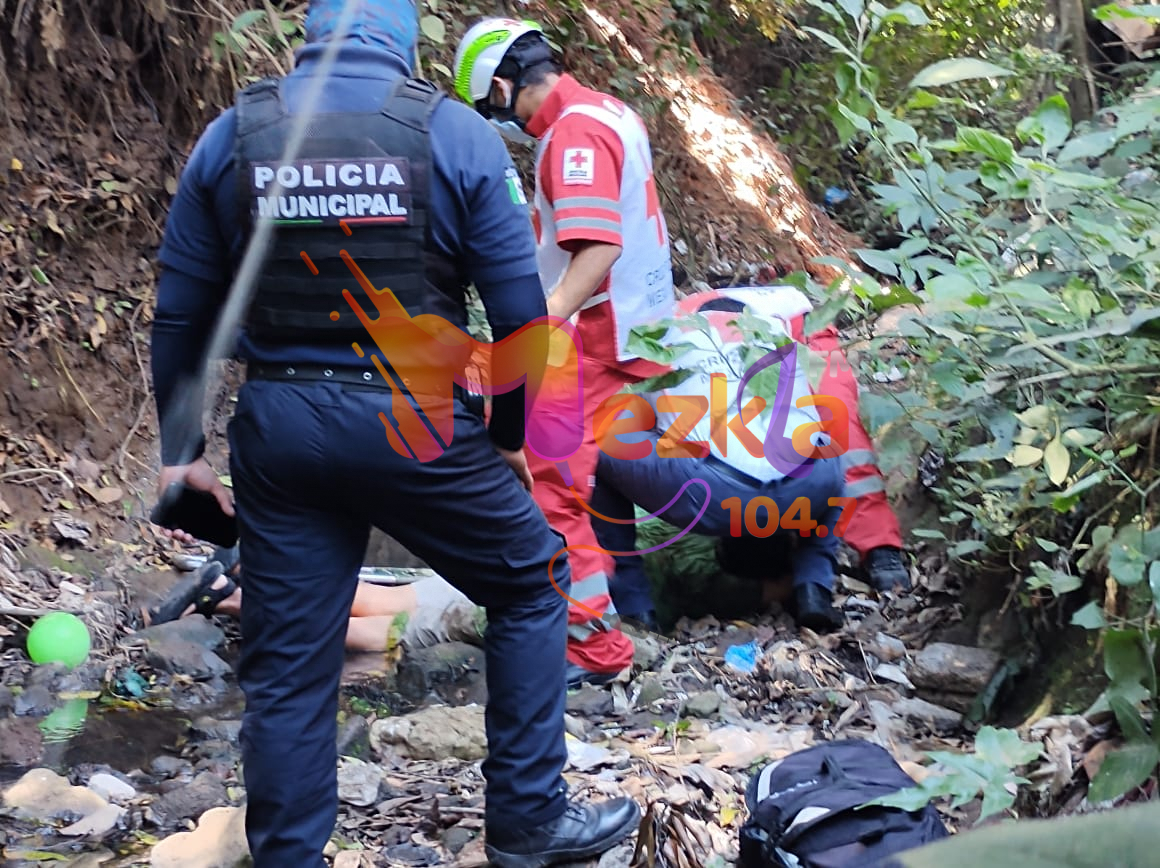 Fueron elementos de la policía local y paramédicos de cruz roja quienes llegaron al fondo del barranco que tiene un aproximado de 20 metros de altura, para brindarle los primeros auxilios al lesionado