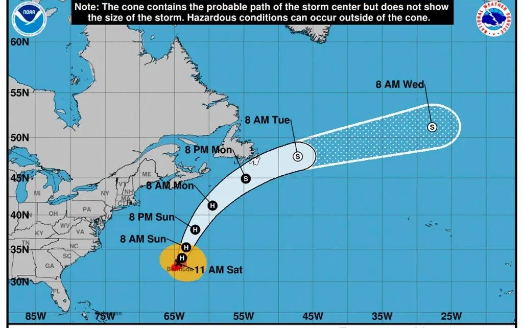 Y mientras el sistema se aleja de Bermudas, irá disminuyendo su velocidad, por lo que los meteorólogos predicen que Bermudas experimentará otro extenso periodo de fuertes vientos y lluvias en las próximas 36 horas.