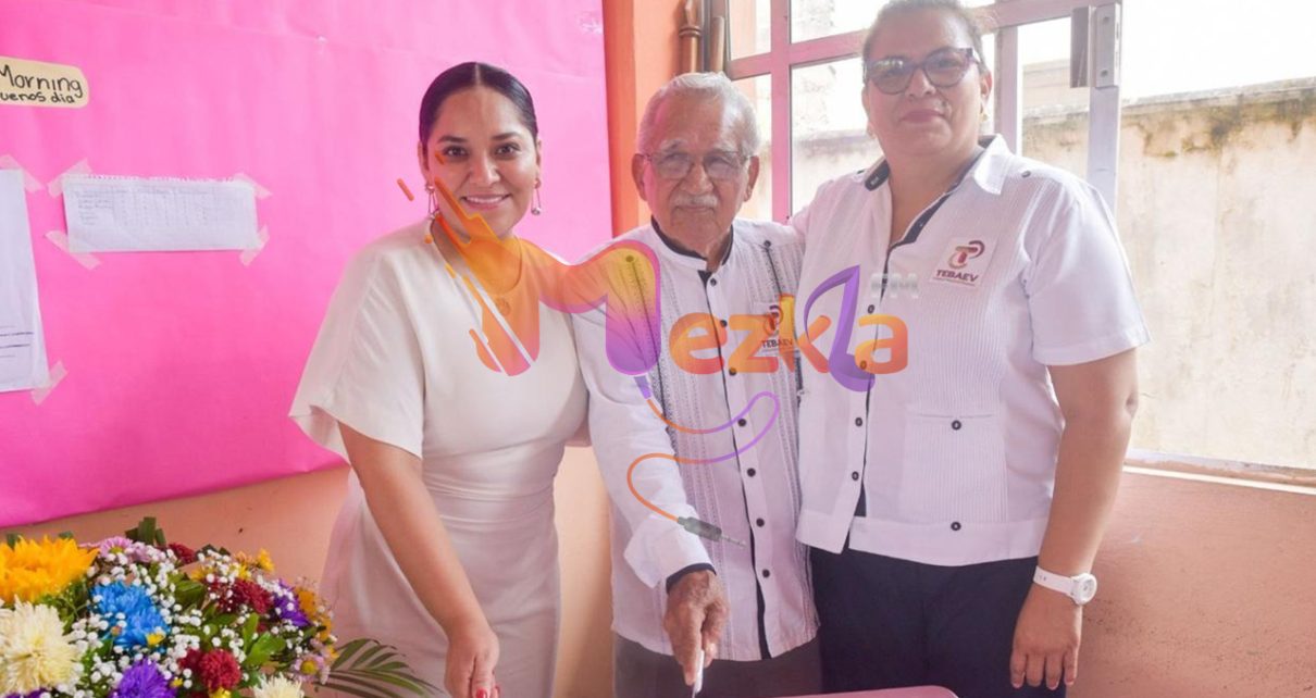 La edil reconoció a Norma Isabel Chipol Artigas, directora del plantel, por su compromiso con la educación, así como al docente Humberto Santo Montenegro, Supervisor Escolar de Telebachilleratos, por su valioso acompañamiento.