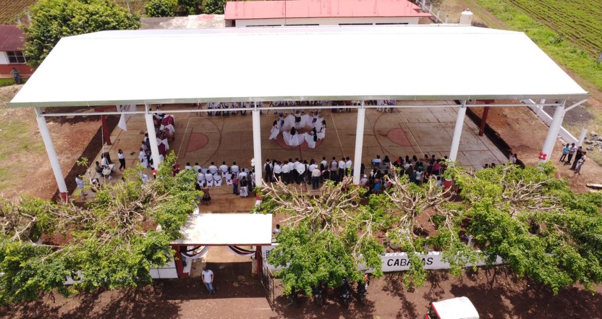 Catemaco, Ver.- Se lleva a cabo la inauguración de la construcción del domo, ubicado en el TEBAEV de la comunidad de Zapoapan de Cabañas por parte del Presidente Municipal Lic. Juan José Rosario Morales acompañado de la Sindica Única Mayra Janet Nolasco Belle y el Prof. Jorge Palafox Taxilaga Director de esta institución, junto con profesores y alumnado.