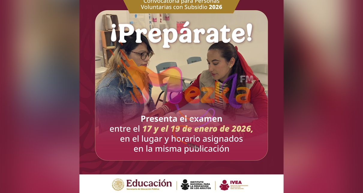Xalapa, Ver., jueves 15 de enero de 2026.- El Instituto Veracruzano de Educación para los Adultos (IVEA) convoca a participar en el examen de evaluación que se aplicará del 17 al 19 de enero, dirigido a las personas interesadas en integrarse al programa de Personas Voluntarias con Subsidio y desempeñarse como asesores educativos.