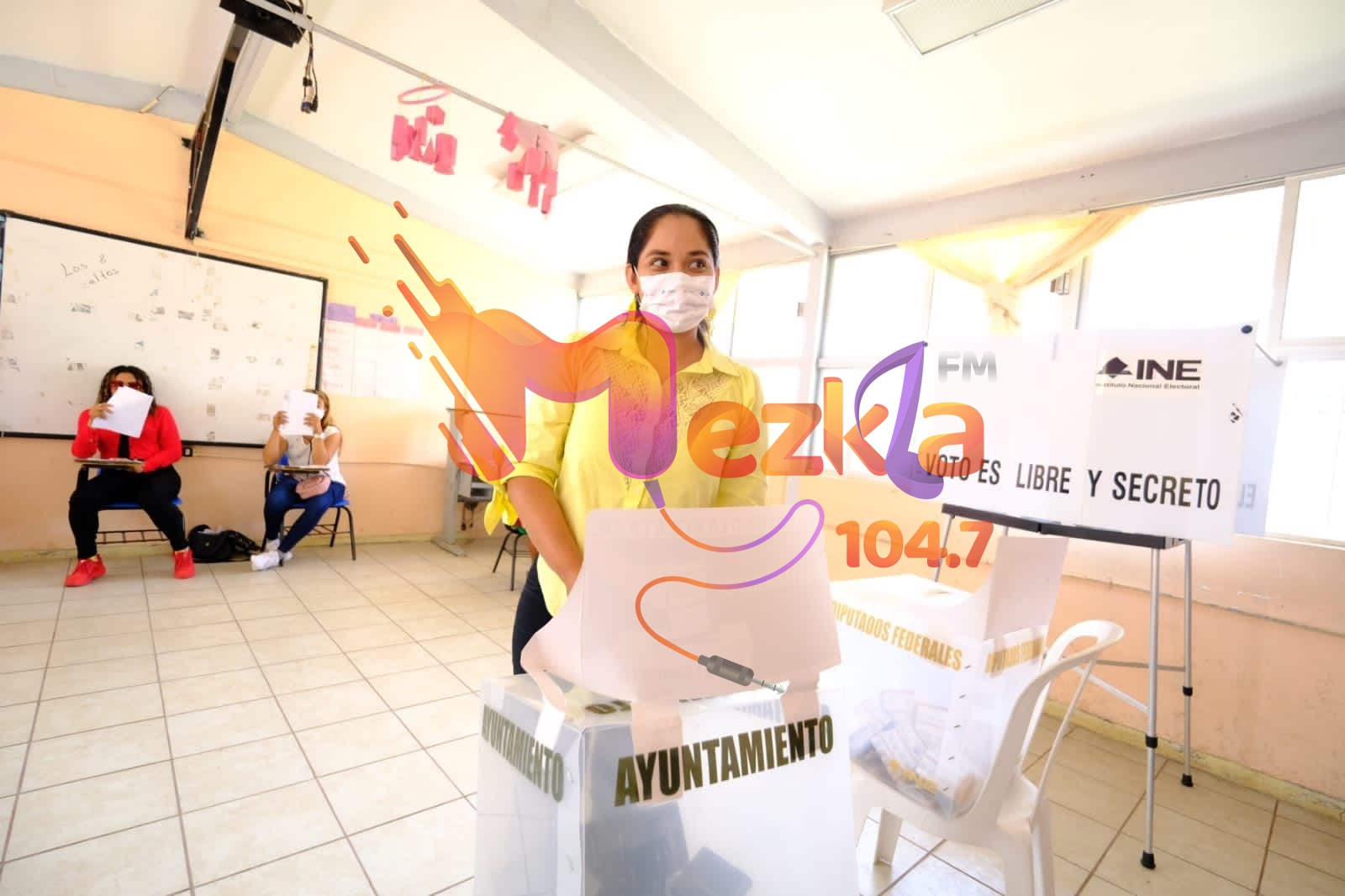 La aspirante a la presidencia municipal de Santiago Tuxtla, Krystel Hernández Topete, por la alianza Va por México, efectuó su voto en la escuela primaria Rafael Ramírez Castañeda de la localidad de Tres Zapotes.