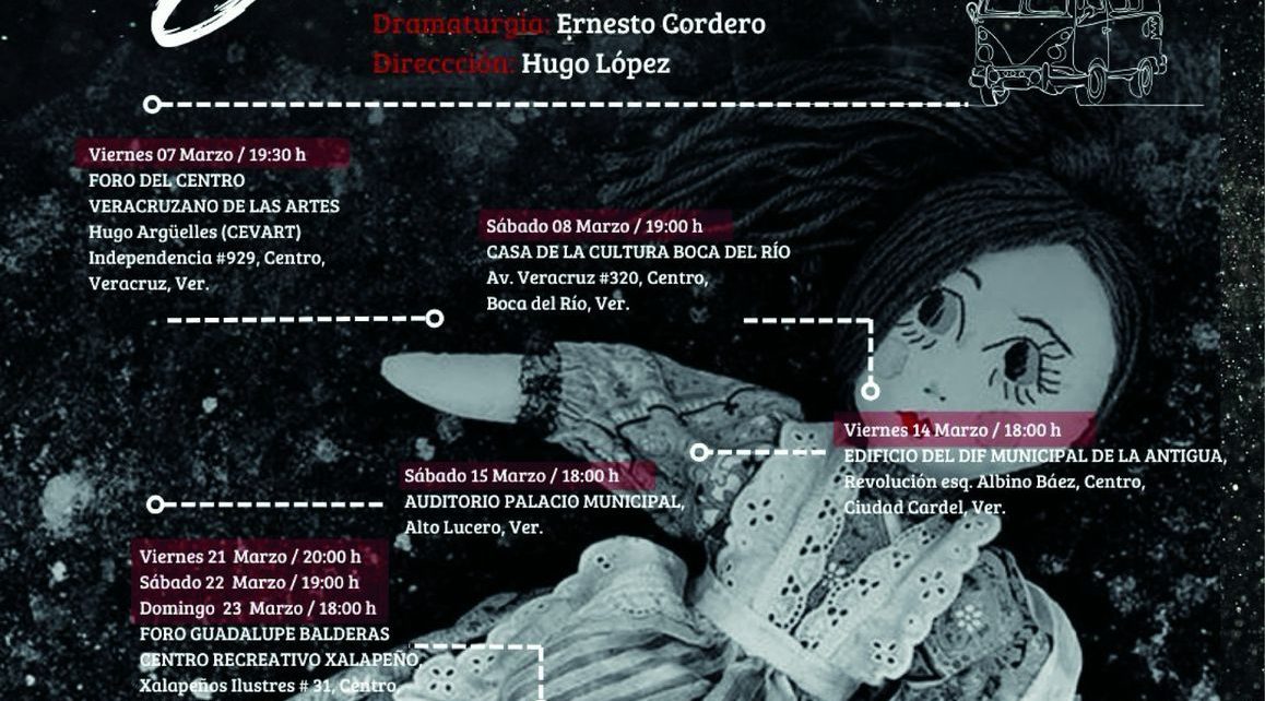 Xalapa, Ver., viernes 07 de marzo de 2025.- La Secretaría de Cultura de Veracruz, en coordinación con MEGA México en Escena-Grupos Artísticos 2024, subsidiado por Sistema de Apoyos a la Creación y Proyectos Culturales de la Secretaría de Cultura, invita a las presentaciones de la obra Senaida del 07 de marzo al 05 de abril.